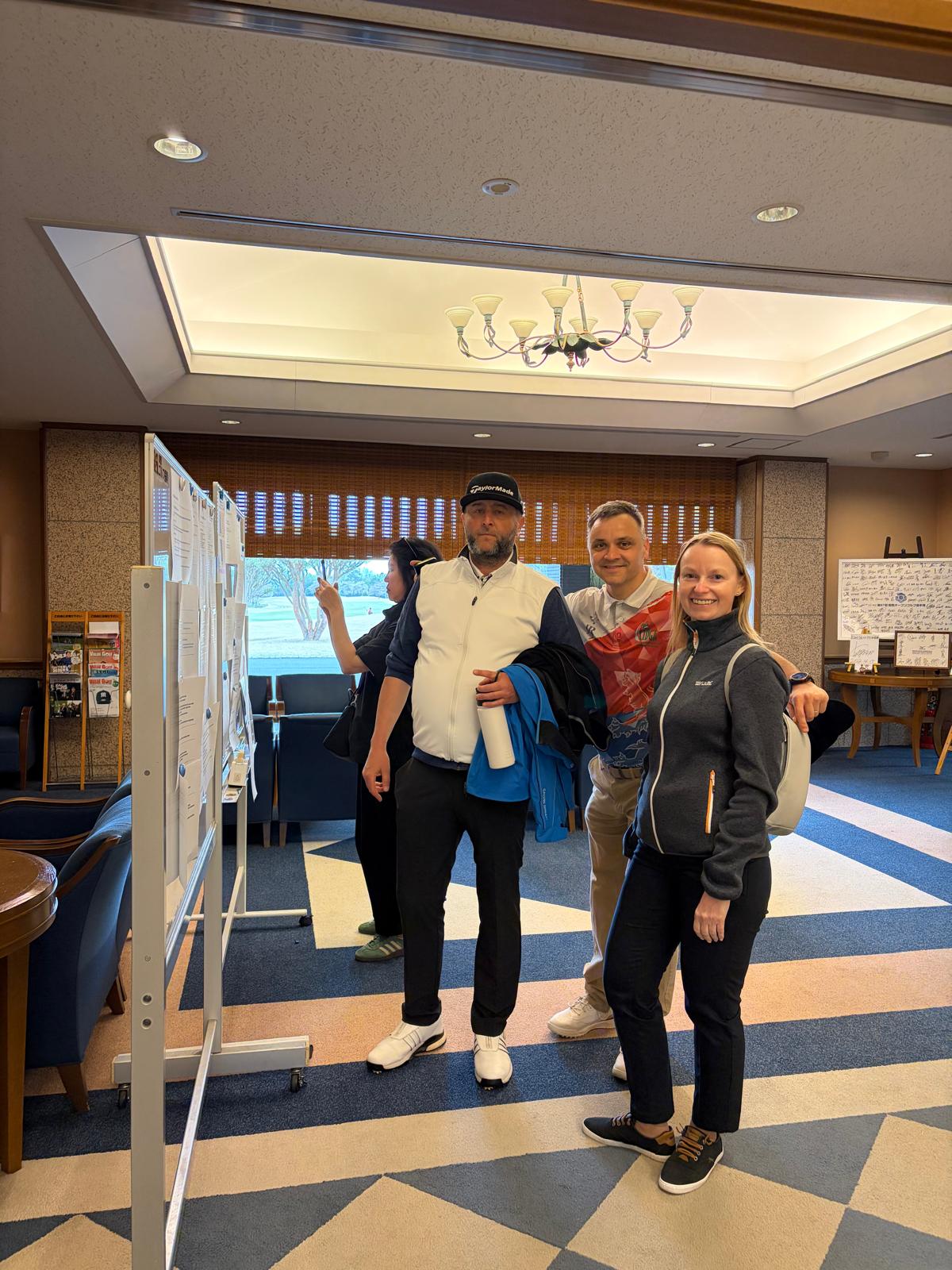 Cvičné kolo se ještě odehrálo za teplého slunečného počasí, ovšem předpověď vydatných srážek na dny příští s sebou přinesla i vyhlídky na možné zrušení turnaje. K tomu naštěstí nedošlo, a i přes deštivé počasí, které v Yomiuri Country Club panovalo během obou soutěžních kol, se podařilo turnaj odehrát. K naší velké radosti se, po loňském bronzu Davida, i letos objevila česká vlajka na medailové pozici, tentokrát díky Františku Bicanovi, který vyrovnaným výkonem v obou kolech (36 a 37 stbl.) vybojoval stříbro v kategorii Stableford. Velká gratulace!
